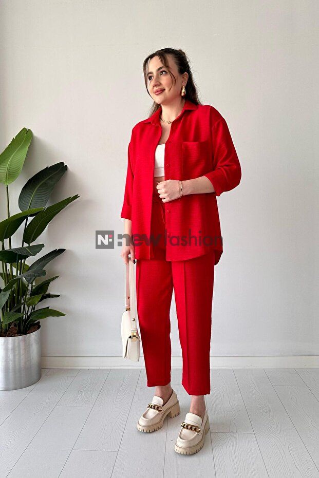 - تنسيق مثالي ومرن: يتكون الطقم من قميص طويل بأكمام قابلة للطي وبنطال مريح بخصر مطاطي، مما يجعله مناسباً للعمل، السفر، أو حتى النزهات مع الصديقات.